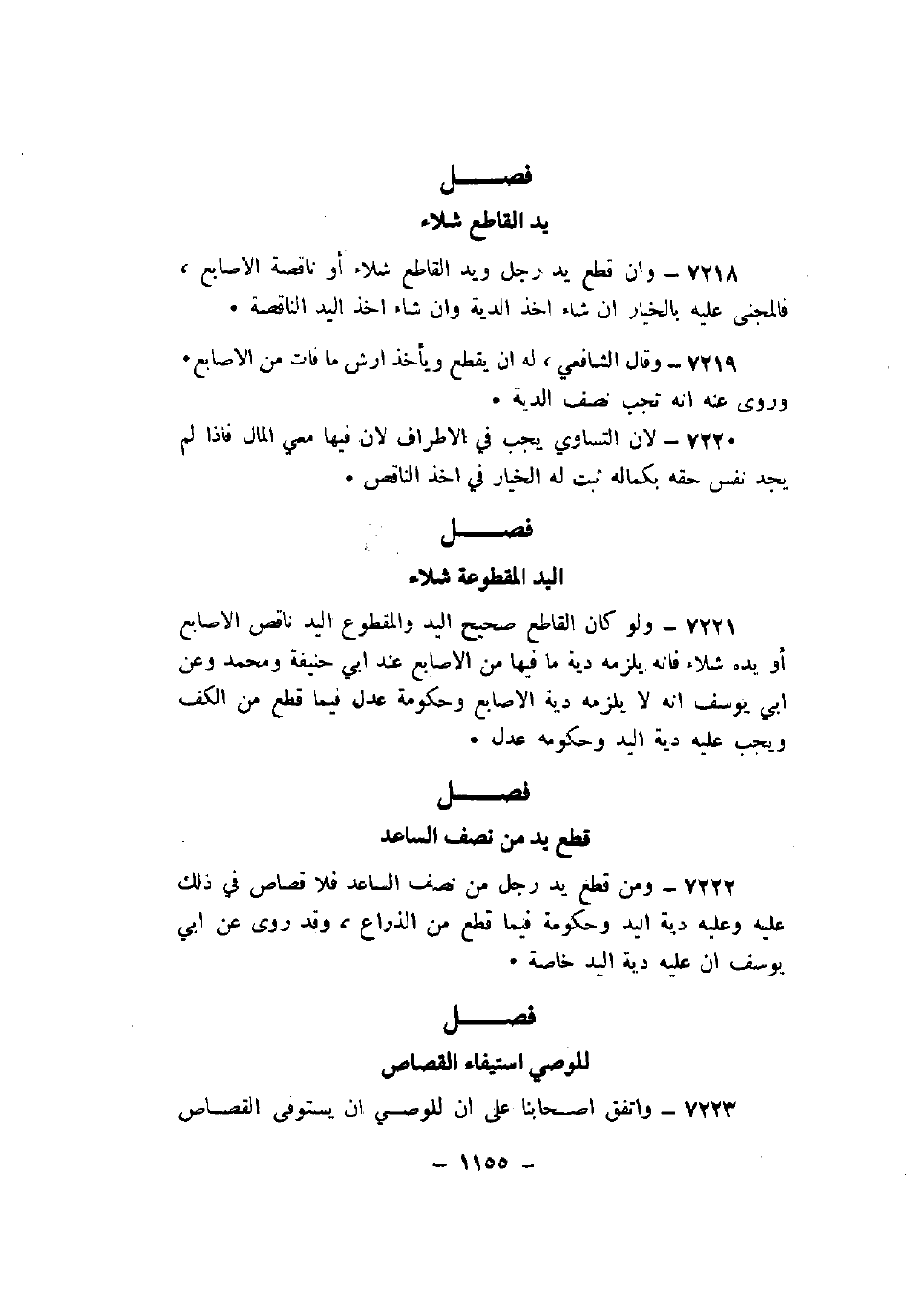 7222 - ومن قطع يد رجل من نصف الساعد فلا قصاص في ذلك عليه وعليه دية اليد وحكومة فيما قطع من الذراع، وقد روى عن أبي يوسف أن عليه دية اليد خاصة.