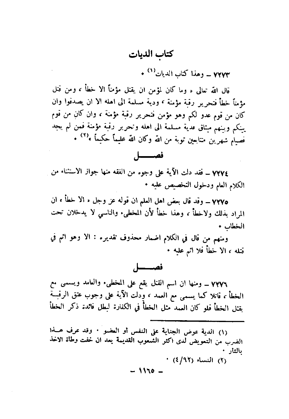 قال الله تعالى: {وَمَا كَانَ لِمُؤْمِنٍ أَنْ يَقْتُلَ مُؤْمِناً إِلاَّ خَطَأً وَمَنْ قَتَلَ مُؤْمِناً خَطَأً فَتَحْرِيرُ رَقَبَةٍ مُؤْمِنَةٍ وَدِيَةٌ مُسَلَّمَةٌ إِلَى أَهْلِهِ إِلاَّ أَنْ يَصَّدَّقُوا فَإِنْ كَانَ مِنْ قَوْمٍ عَدُوٍّ لَكُمْ وَهُوَ مُؤْمِنٌ فَتَحْرِيرُ رَقَبَةٍ مُؤْمِنَةٍ وَإِنْ كَانَ مِنْ قَوْمٍ بَيْنَكُمْ وَبَيْنَهُمْ مِيثَاقٌ فَدِيَةٌ مُسَلَّمَةٌ إِلَى أَهْلِهِ وَتَحْرِيرُ رَقَبَةٍ مُؤْمِنَةٍ فَمَنْ لَمْ يَجِدْ فَصِيَامُ شَهْرَيْنِ مُتَتَابِعَيْنِ تَوْبَةً مِنْ اللَّهِ وَكَانَ اللَّهُ عَلِيماً حَكِيماً}.