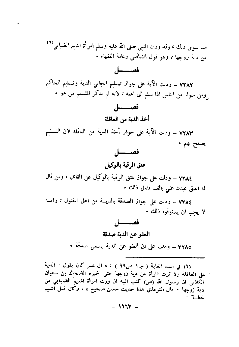 7285 - ودلت على جواز الصدقة بالدية عن أهل المقتول، وأنه لا يجب أن يستوفوا ذلك.