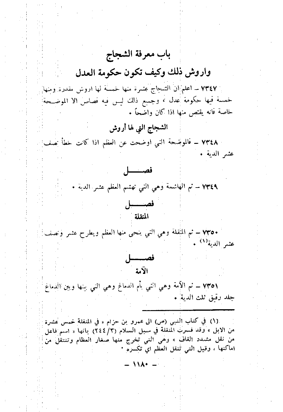7351 - ثم الآمة وهي التي بأم الدماغ وهي التي بينها وبين الدماغ جلد رقيق ثلث الدية.