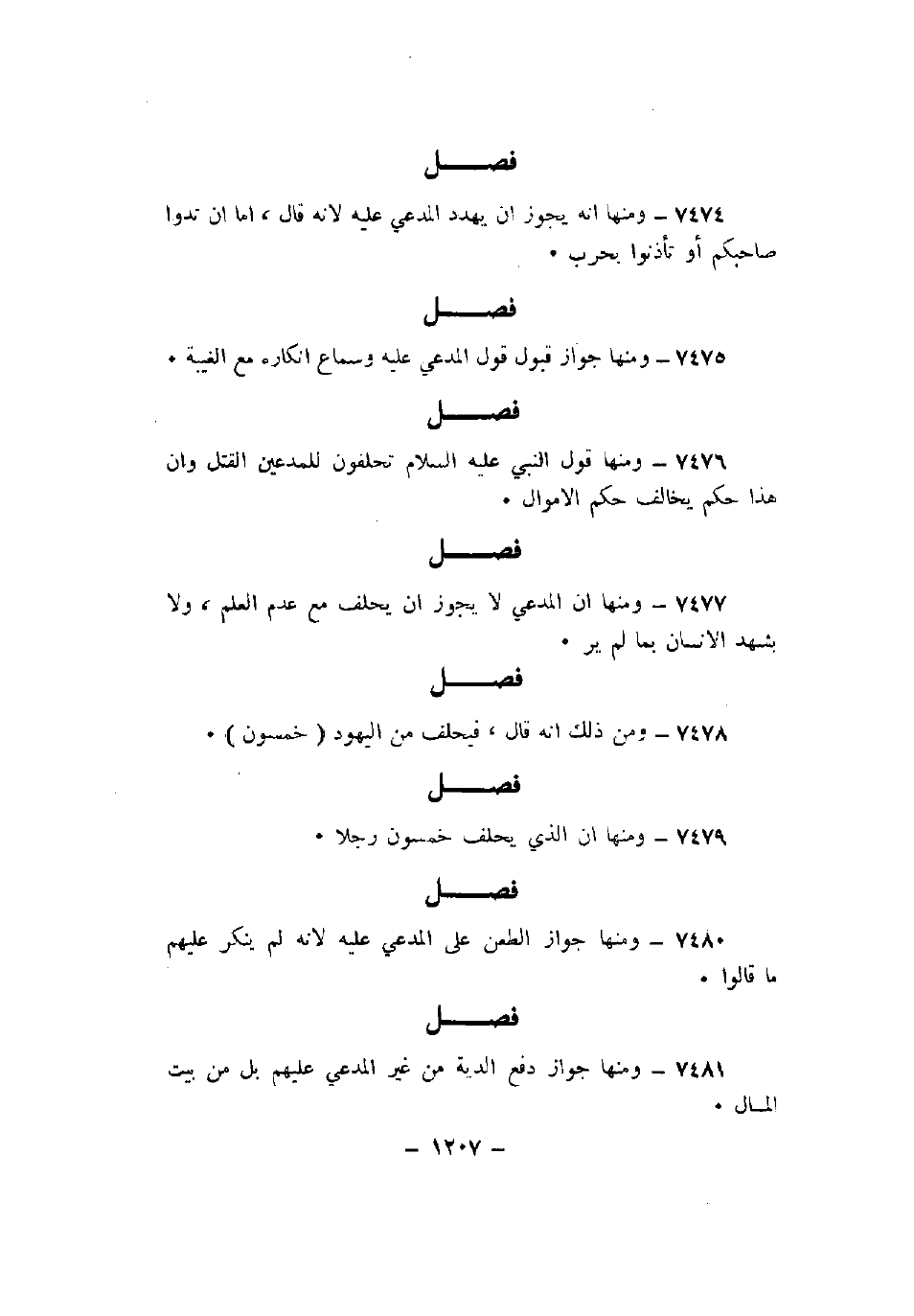7476 - ومنها قول النبي عليه السلام تحلفون للمدعين القتل وإن هذا حكم يخالف حكم الأموال.