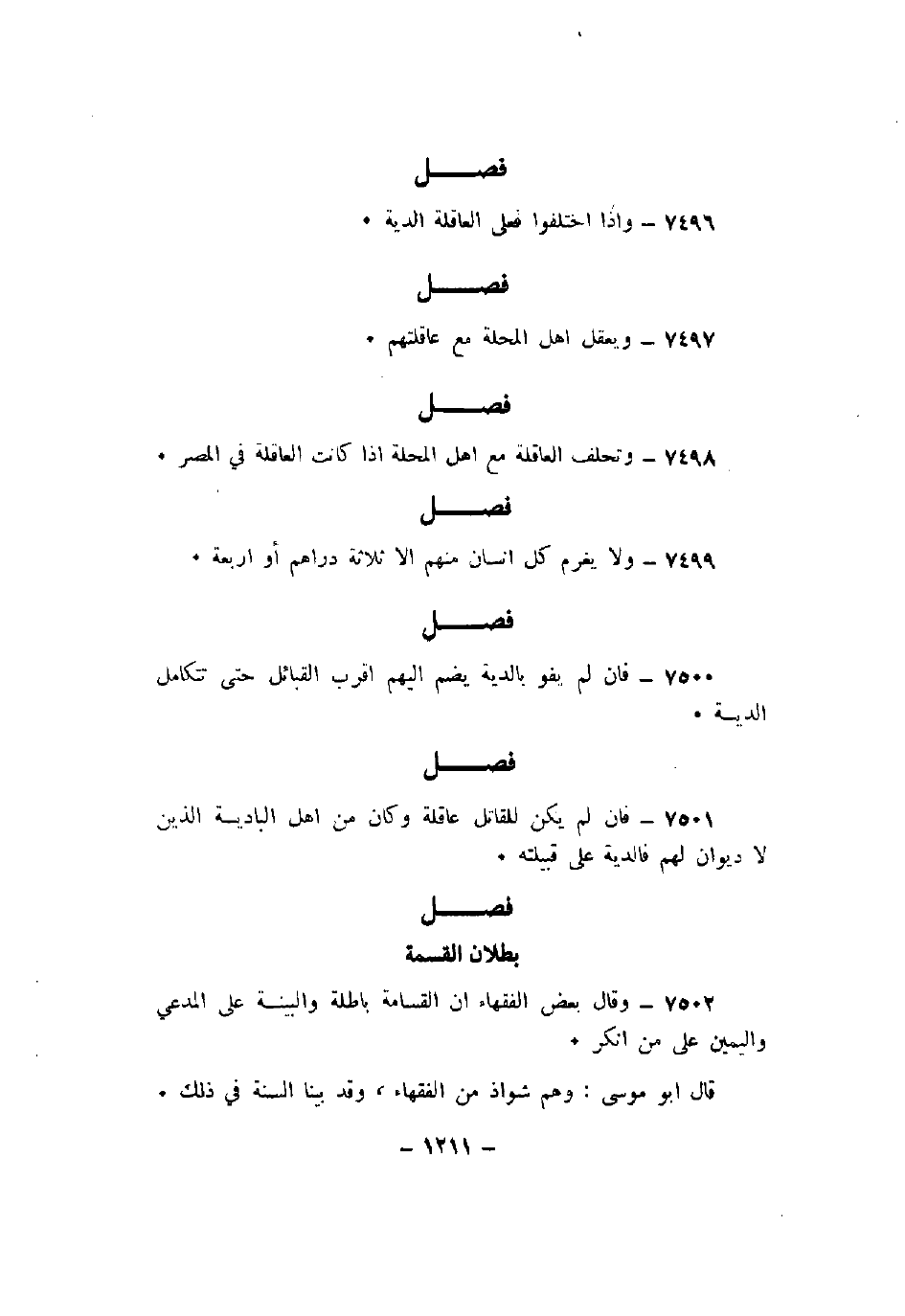 7502 - وقال بعض الفقهاء أن القسامة باطلة والبينة على المدعي واليمين على من أنكر.