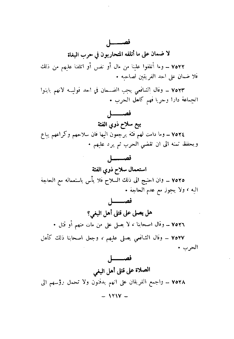 7523 - وقال الشافعي يجب الضمان في أحد قوليه لأنهم باينوا الجماعة داراً وحرباً فهم كاهل الحرب.