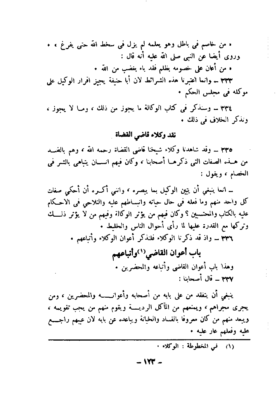 336 - وإذ قد ذكرنا الوكلاء فلنذكر أعوان الوكلاء وأتباعهم.