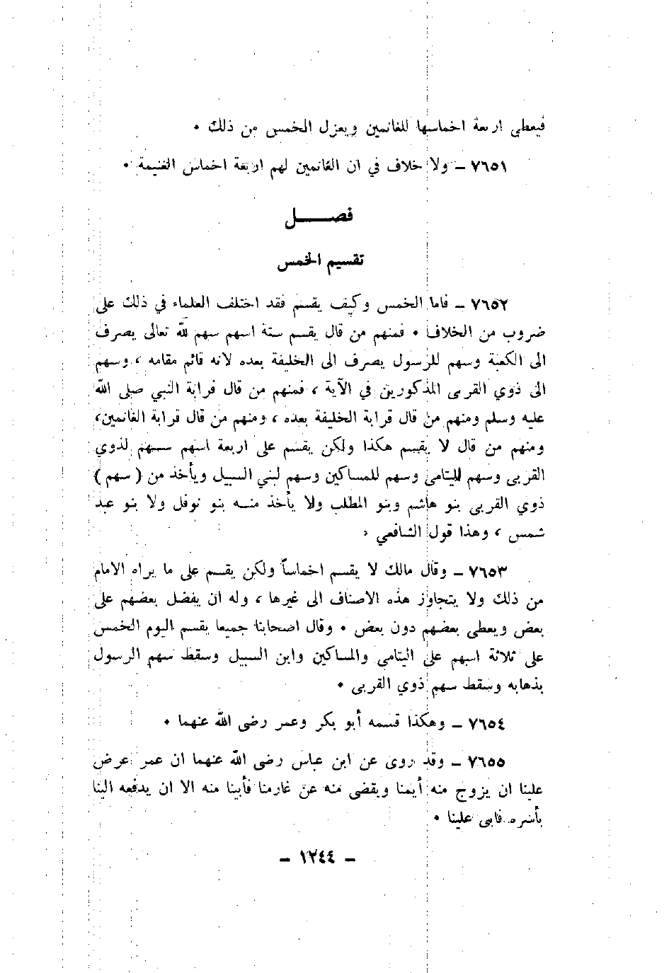 7651 - ولا خلاف في أن الغانمين لهم أربعة أخماس الغنيمة.