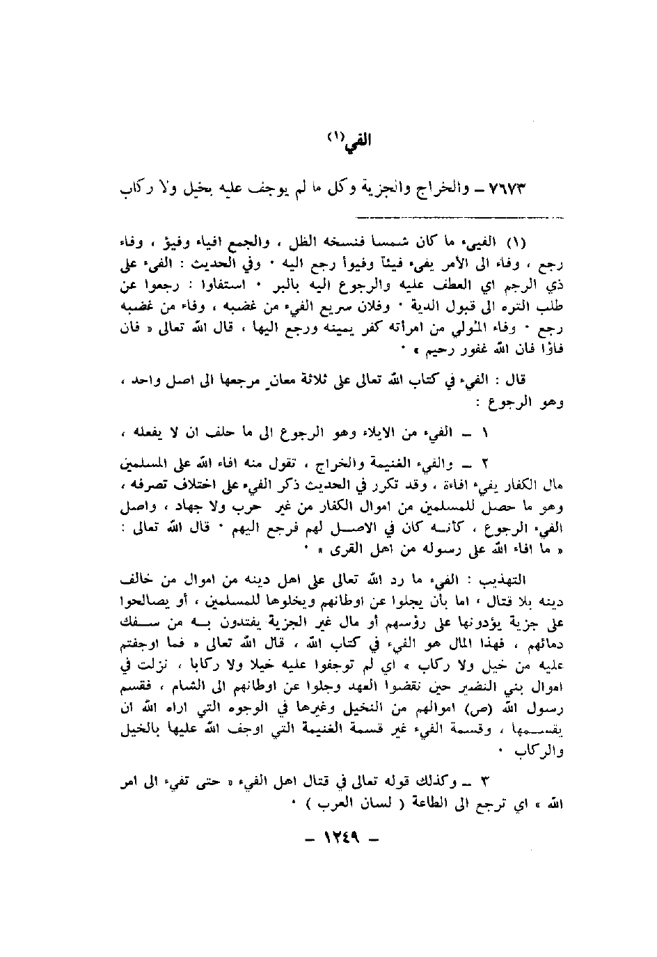 7673 - والخراج والجزية وكل ما لم يوجف عليه بخيل ولا ركاب