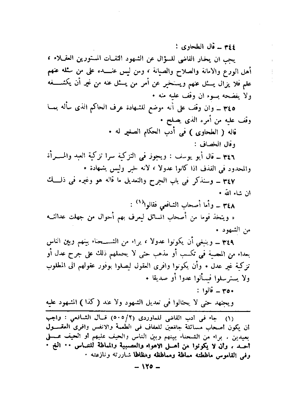 349 - وينبغي أن يكونوا عدولا، براء من الشحناء بينهم وبين الناس بعداء من المعصية في تكسب أو مذهب حتى لا يحملهم ذلك على جرح عدل أو تزكية غير عدل. وأن يكونوا وافري العقول ليصلوا بوفور عقولهم الى المطلوب ولا يسترسلوا فيسألوا عدواً أو صديقاً.