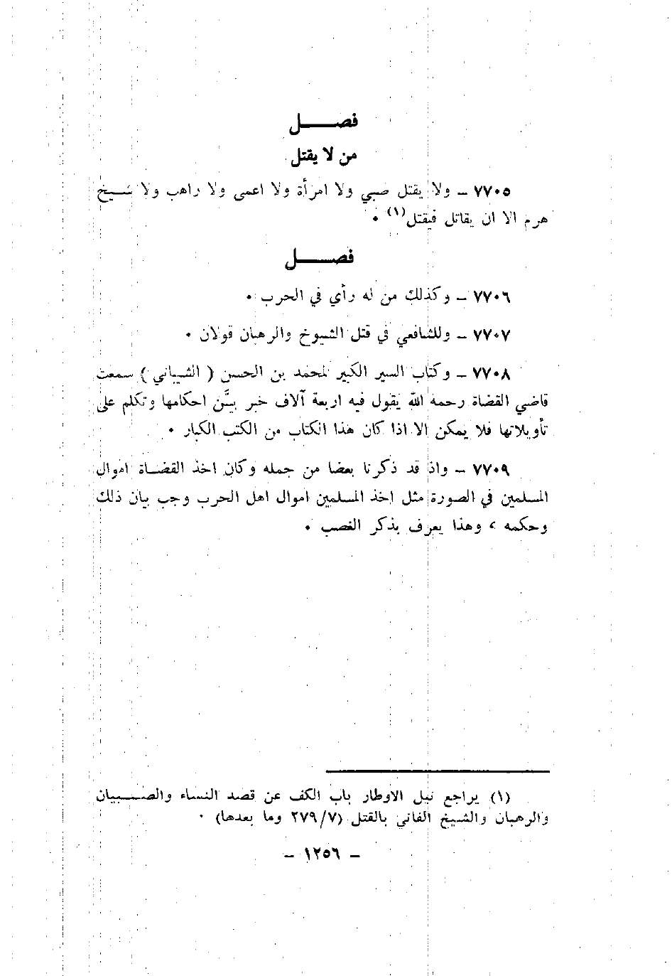 7705 - ولا يقتل صبي ولا امرأة ولا أعمى ولا راهب ولا شيخ هرم إلا أن يقاتل فيقتل.