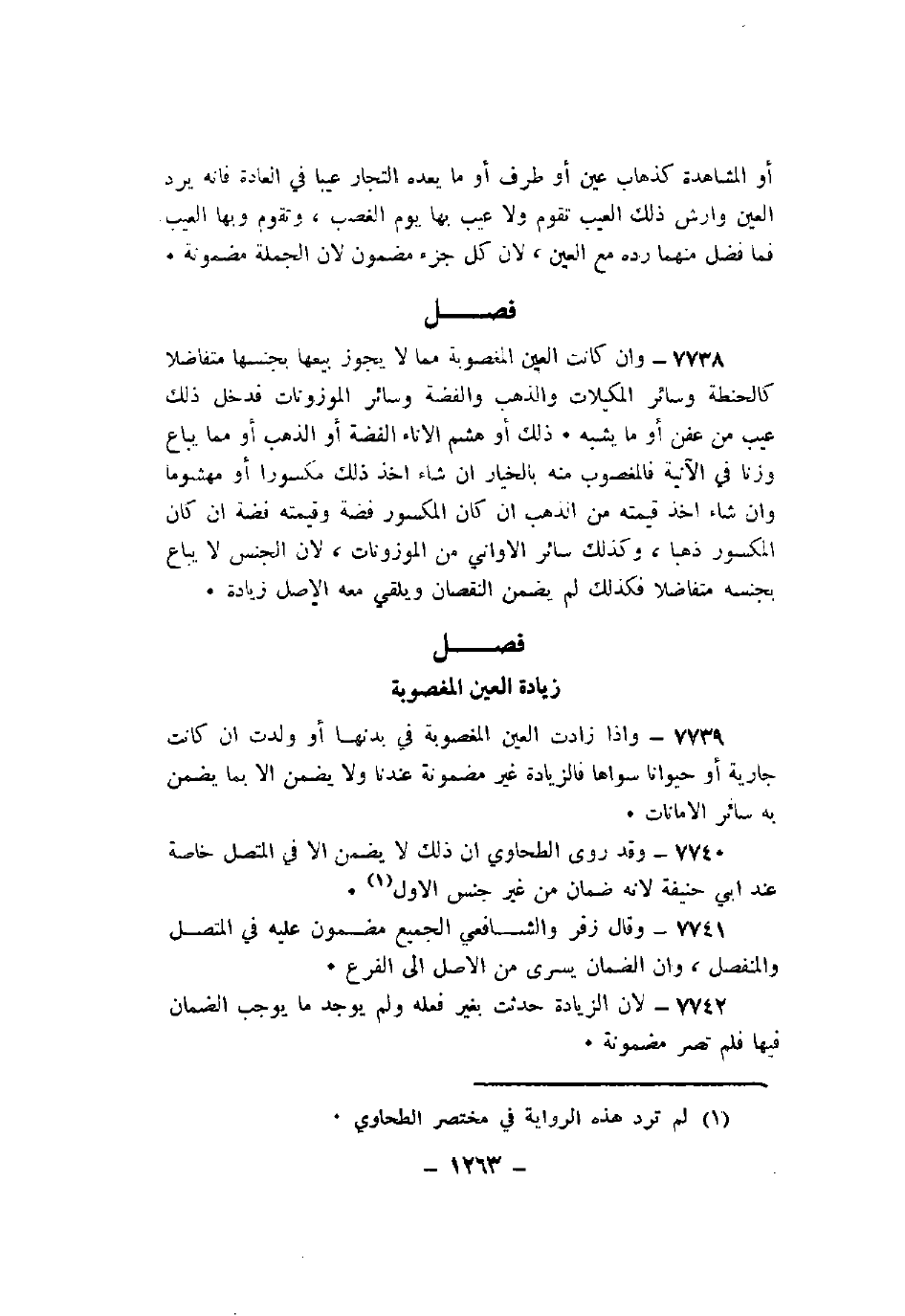 7741 - وقال زفر والشافعي الجميع مضمون عليه في المتصل والمنفصل، وأن الضمان يسري من الأصل إلى الفرع.
