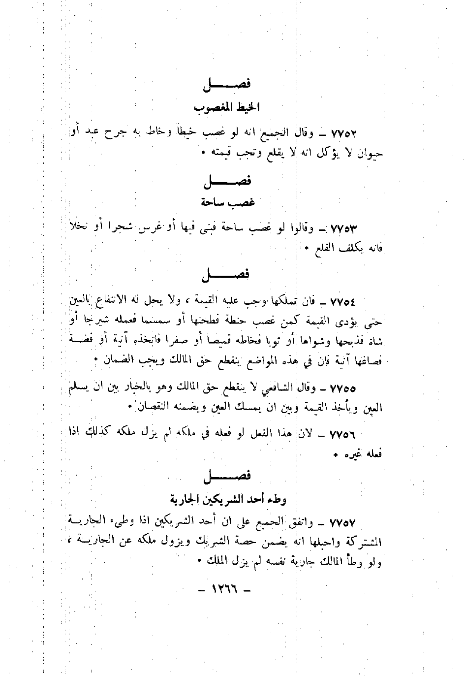 7753 - وقالوا لو غصب ساحة فبنى فيها أو غرس شجراً أو نخلاً فإنه يكلف القلع.