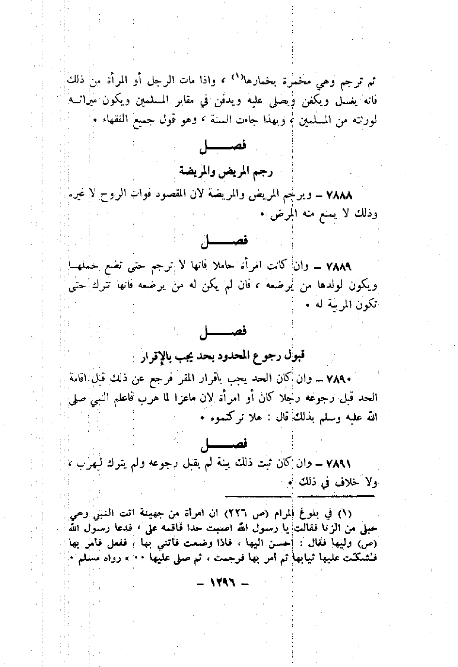 7888 - ويرجم المريض والمريضة لأن المقصود فوات الروح لا غيره وذلك لا يمنع منه المرض.