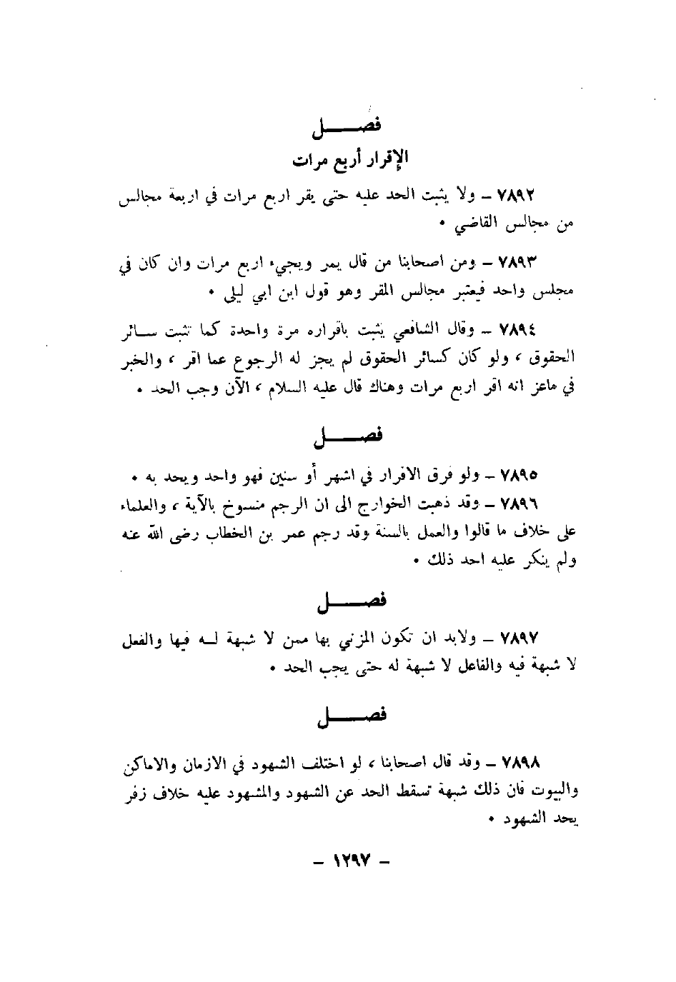 7892 - ولا يثبت الحد عليه حتى يقر أربع مرات في أربعة مجالس من مجالس القاضي.