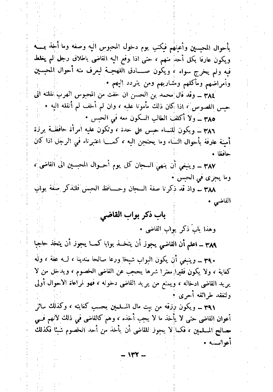 388 - وإذ قد ذكرنا صفة السجان وحافظ الحبس فلنذكر صفه بواب القاضي.