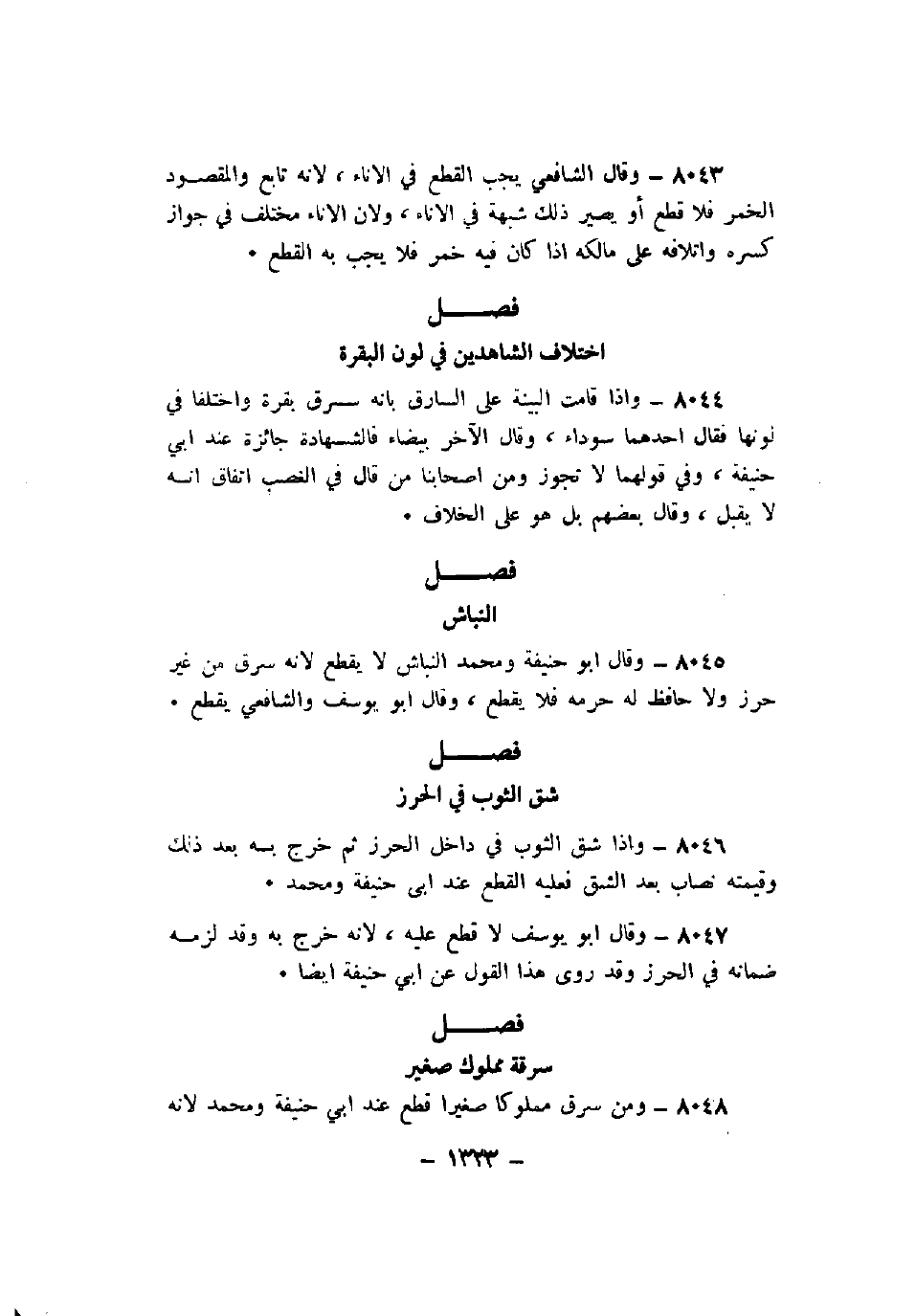 8045 - وقال أبو حنيفة ومحمد النباش لا يقطع لأنه سرق من غير حرز ولا حافظ له حرمة فلا يقطع، وقال أبو يوسف والشافعي يقطع.