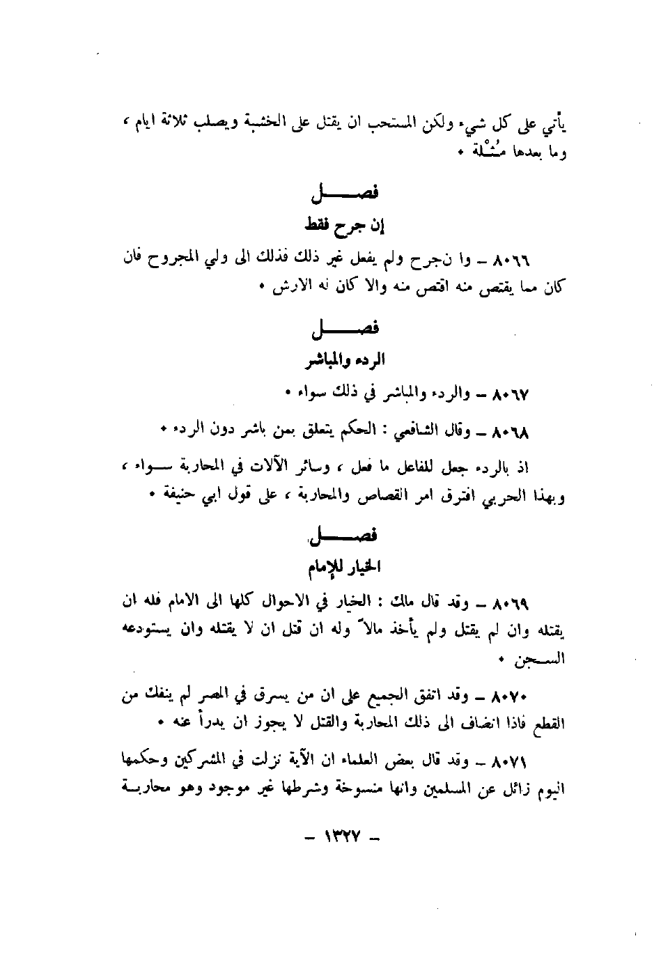 8070 - وقد اتفق الجميع على أن من يسرق في المصر لم ينفك من القطع فإذا أنضاف إلى ذلك المحاربة والقتل لا يجوز أن يدرأ عنه.