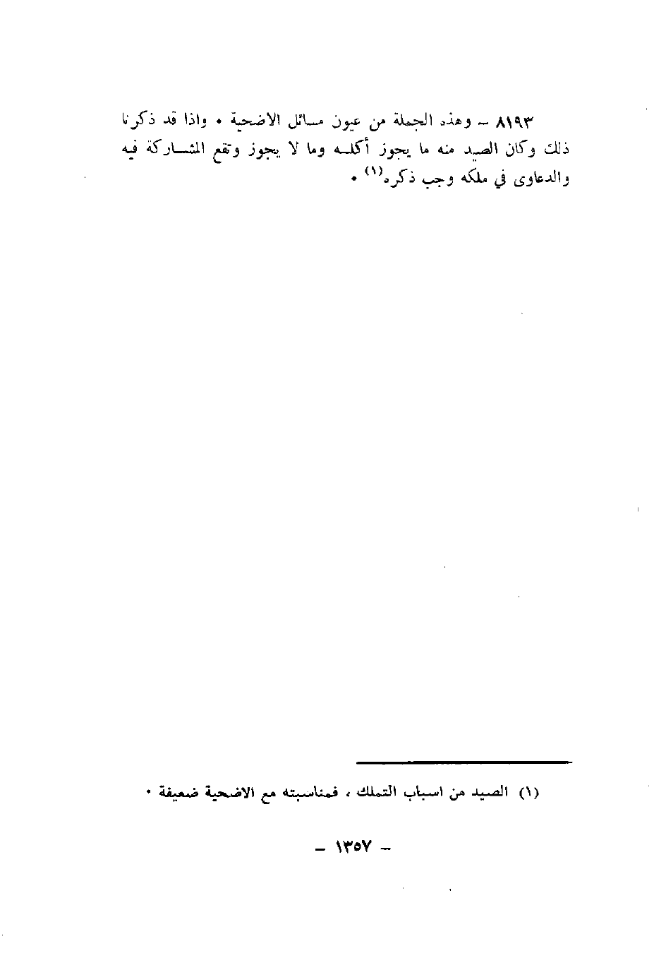 8193 - وهذه الجملة من عيون مسائل الأضحية. وإذا قد ذكرنا ذلك وكان الصيد منه ما يجوز أكله وما لا يجوز تقع المشاركة فيه والدعاوى في ملكه وجب ذكره.