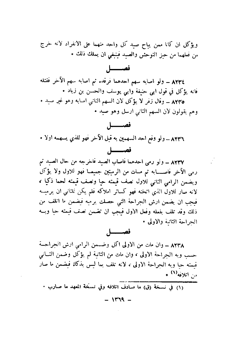 8235 - وقال زفر لا يؤكل لأن السهم الثاني أصابه وهو غير صيد. وهم يقولون لأن السهم الثاني أرسل وهو صيد.