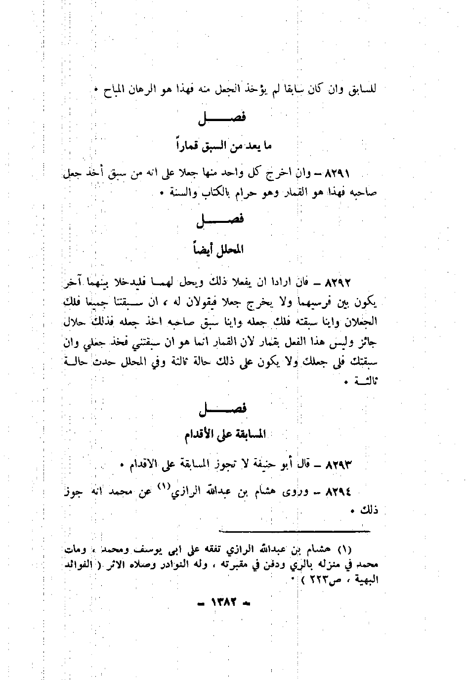 8293 - قال أبو حنيفة لا تجوز المسابقة على الأقدام.