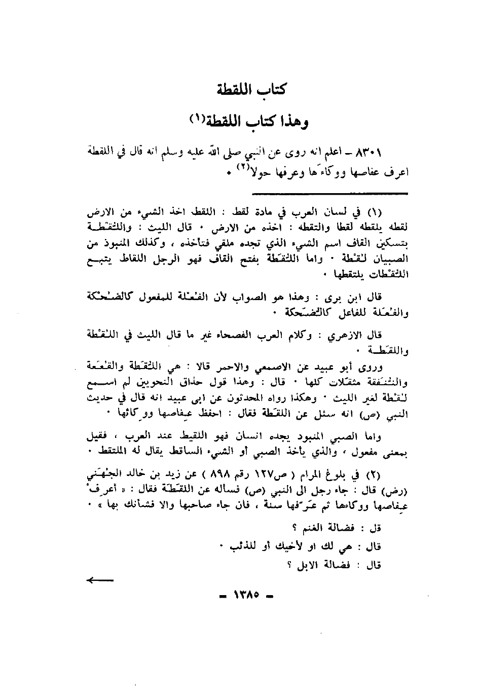 8301 - أعلم أن روى عن النبي صلى الله عليه وسلم أنه قال في اللقطة أعرف عفاصها ووكاءها وعرفها حولا.