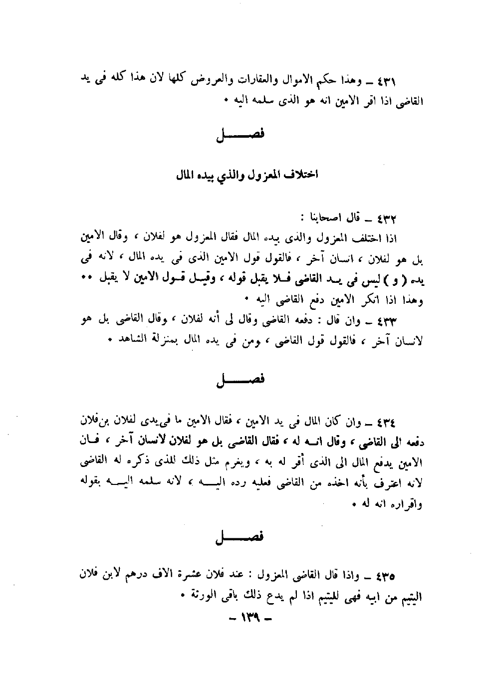 431 - وهذا حكم الأموال والعقارات والعروض كلها لأن هذا كله في يد القاضي إذا أقر الأمين أنه هو الذي سلمه إليه.