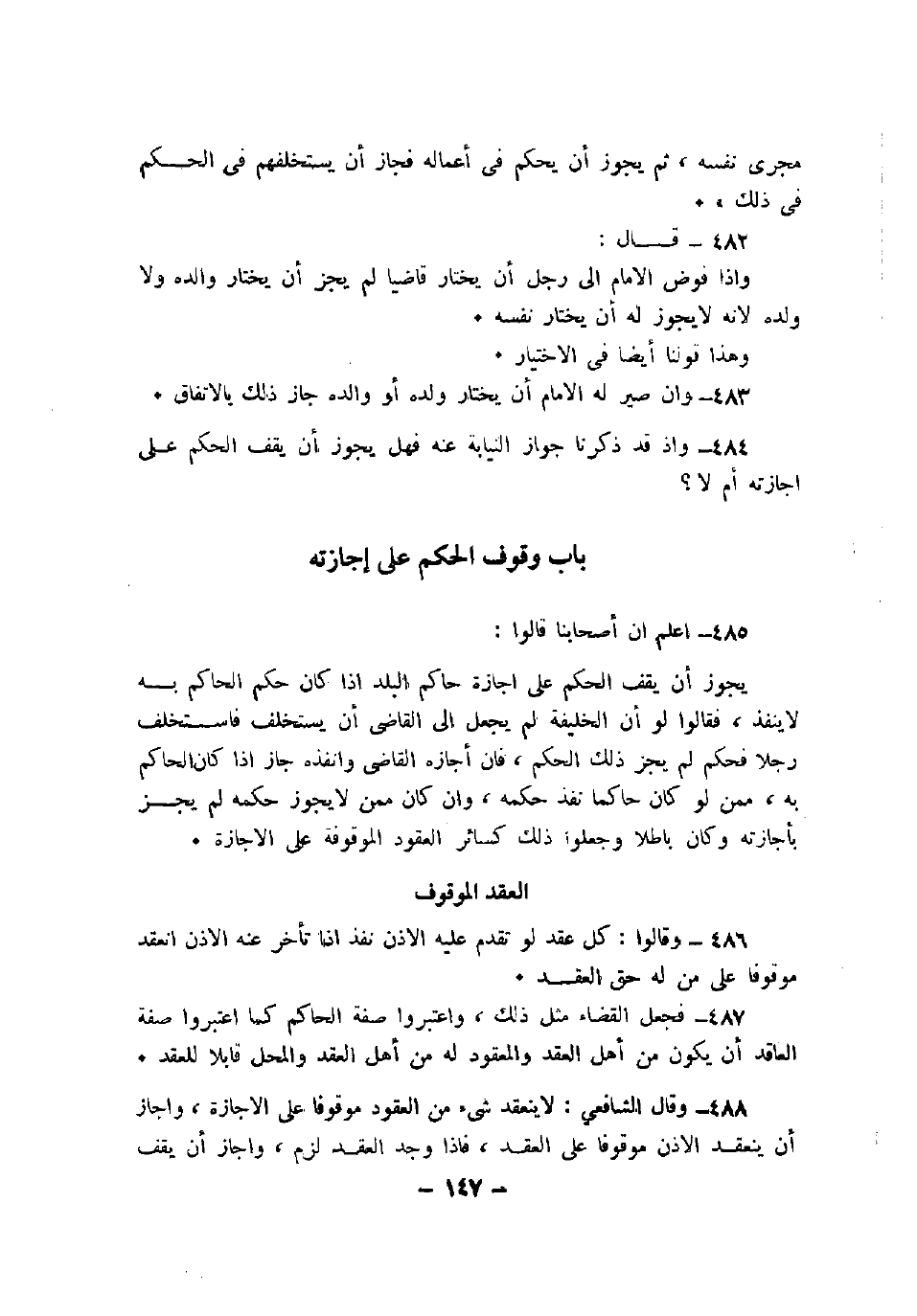 486 - وقالوا: كل عقد لو تقدم عليه الإذن نفذ إذا تأخر عنه الإذن انعقد موقوفاً على من له حق العقد.