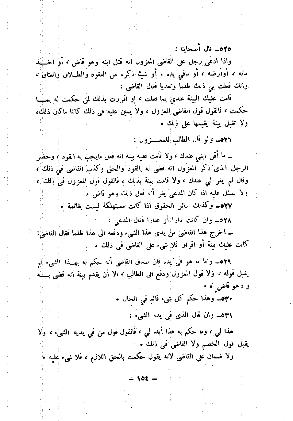 - ما أقر ابني عندك، ولا قامت عليه بينة أنه فعل ما يجب به القود، وحضر الرجل الذي ذكر المعزول أنه قضى له بالقود والحق وكذب القاضي في ذلك، وقال لم يقر لي عندك، ولا قامت بينة بذلك، فالقول قول المعزول في ذلك، ولا يسئل عليه إذا كان المدعى يقر أنه فعل ذلك وهو قاض.