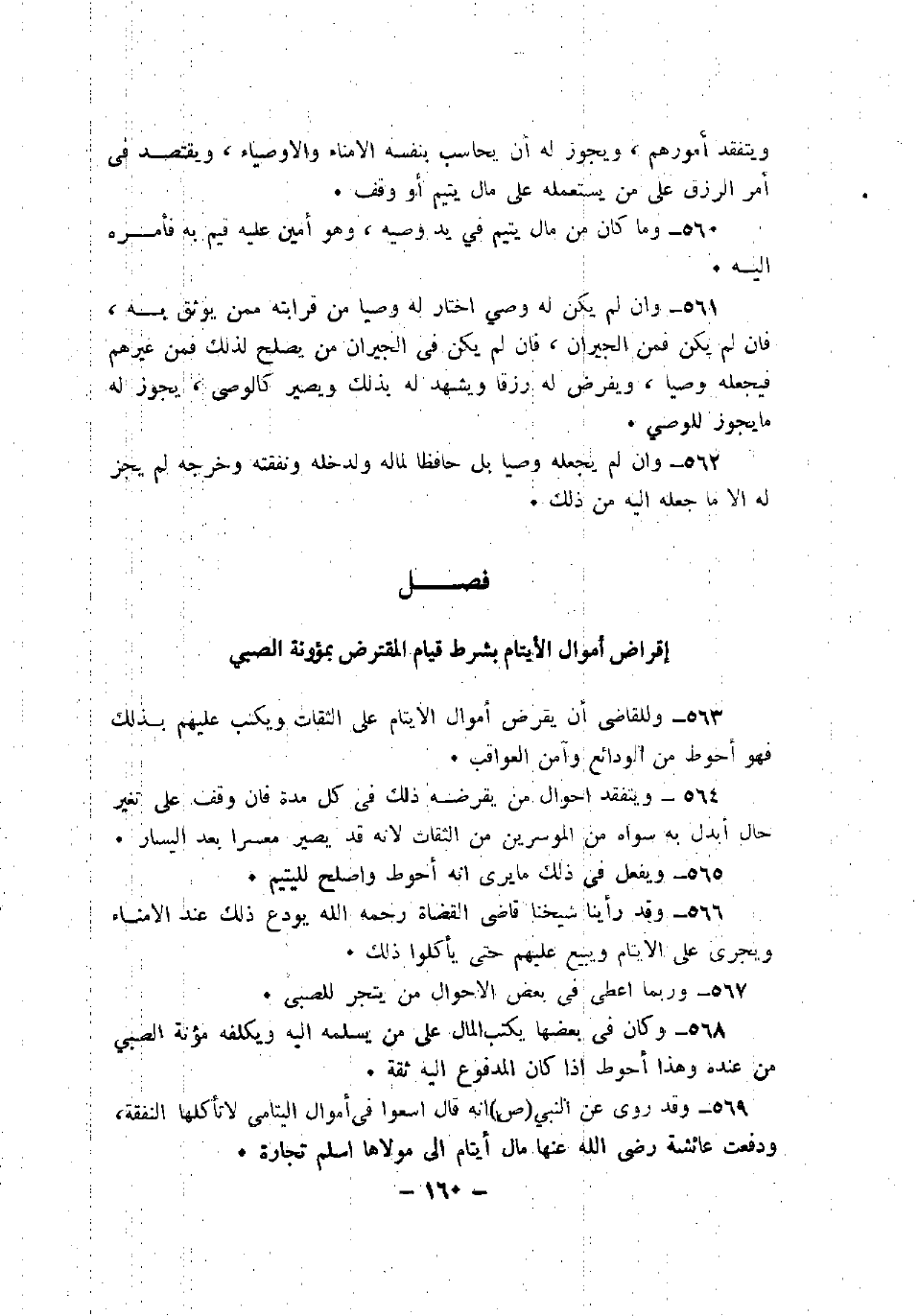 563 - وللقاضي أن يقرض أموال الأيتام على الثقات ويكتب عليهم بذلك فهو أحوط من الودائع وآمن العواقب.