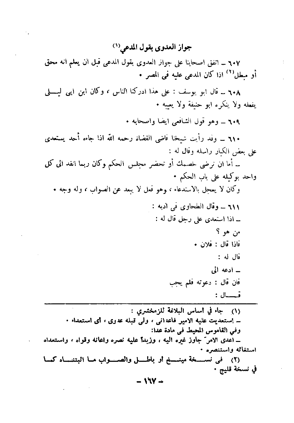607 - اتفق أصحابنا على جواز العدوى بقول المدعي قبل أن يعلم أنه محق أو مبطل إذا كان المدعى عليه في المصر.