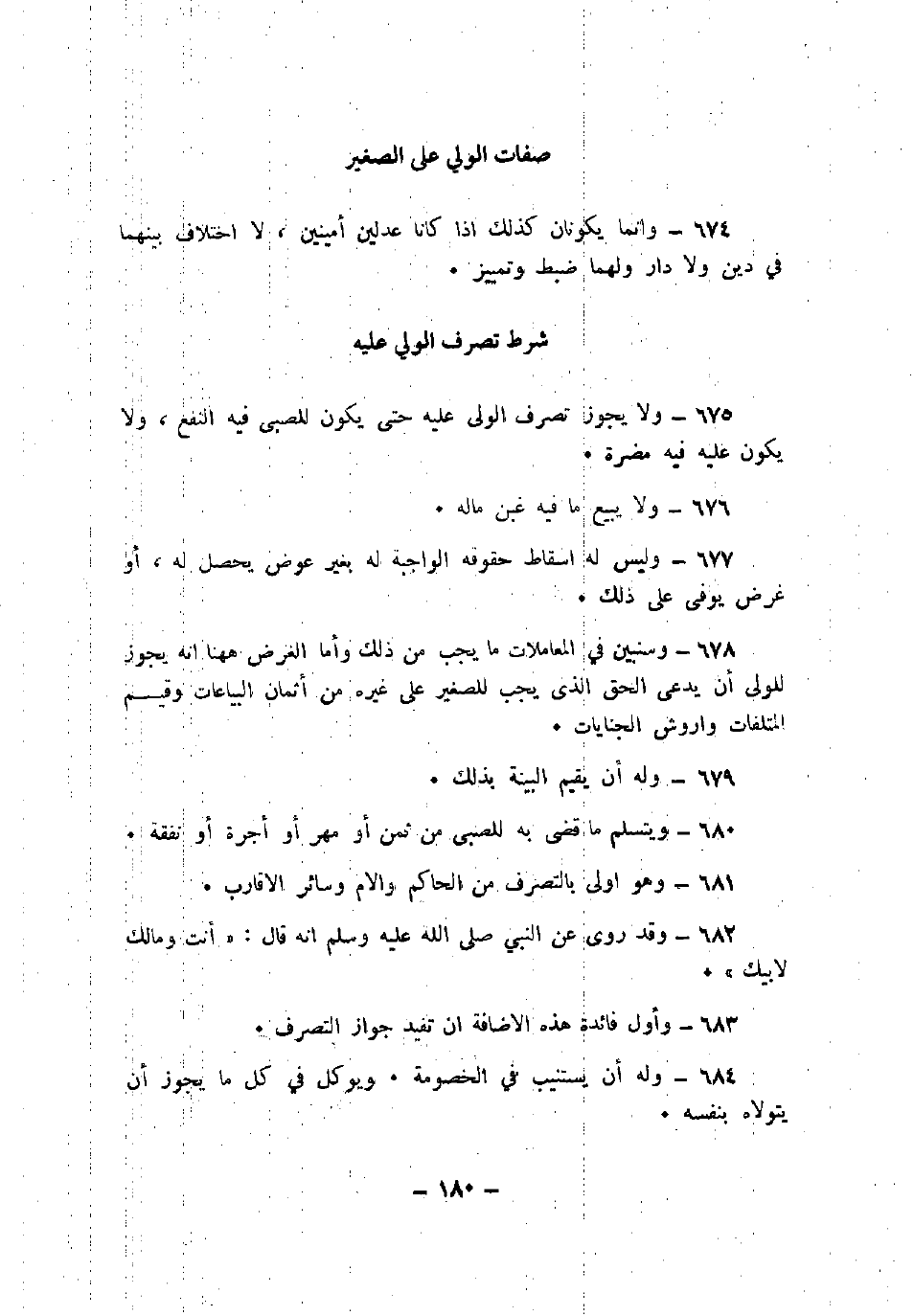 675 - ولا يجوز تصرف الولي عليه حتى يكون للصبي فيه النفع، ولا يكون عليه في مضرة.