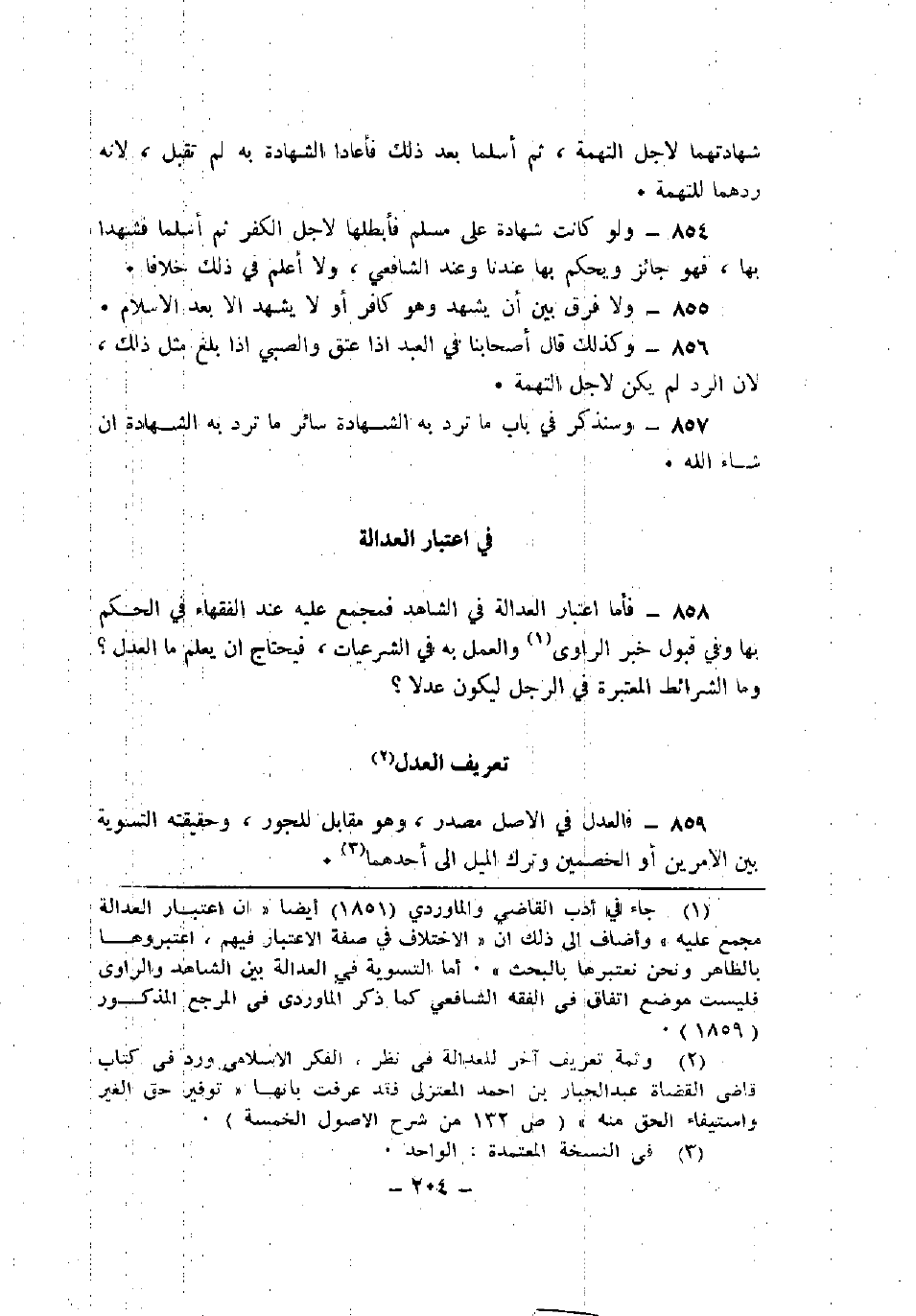 858 - فأما اعتبار العدالة في الشاهد فمجتمع عليه عند الفقهاء في الحكم بها وفي قبول خبر الراوي والعمل به في الشرعيات، فيحتاج أن يعلم ما العدل؟ وما الشرائط المعتبرة في الرجل ليكون عدلاً؟