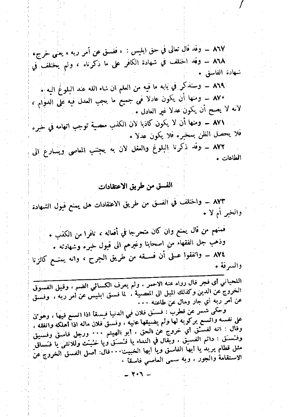 873 - واختلف في الفسق من طريق الاعتقادات هل يمنع قبول الشهادة والخبر أم لا.