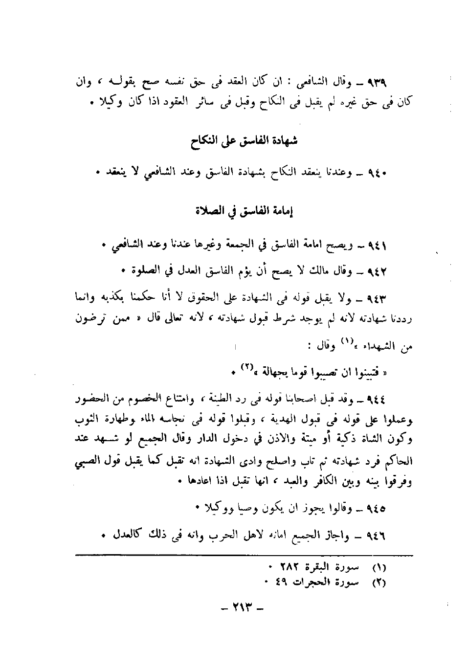 940 - وعندنا ينعقد النكاح بشهادة الفاسق وعند الشافعي لا ينعقد.