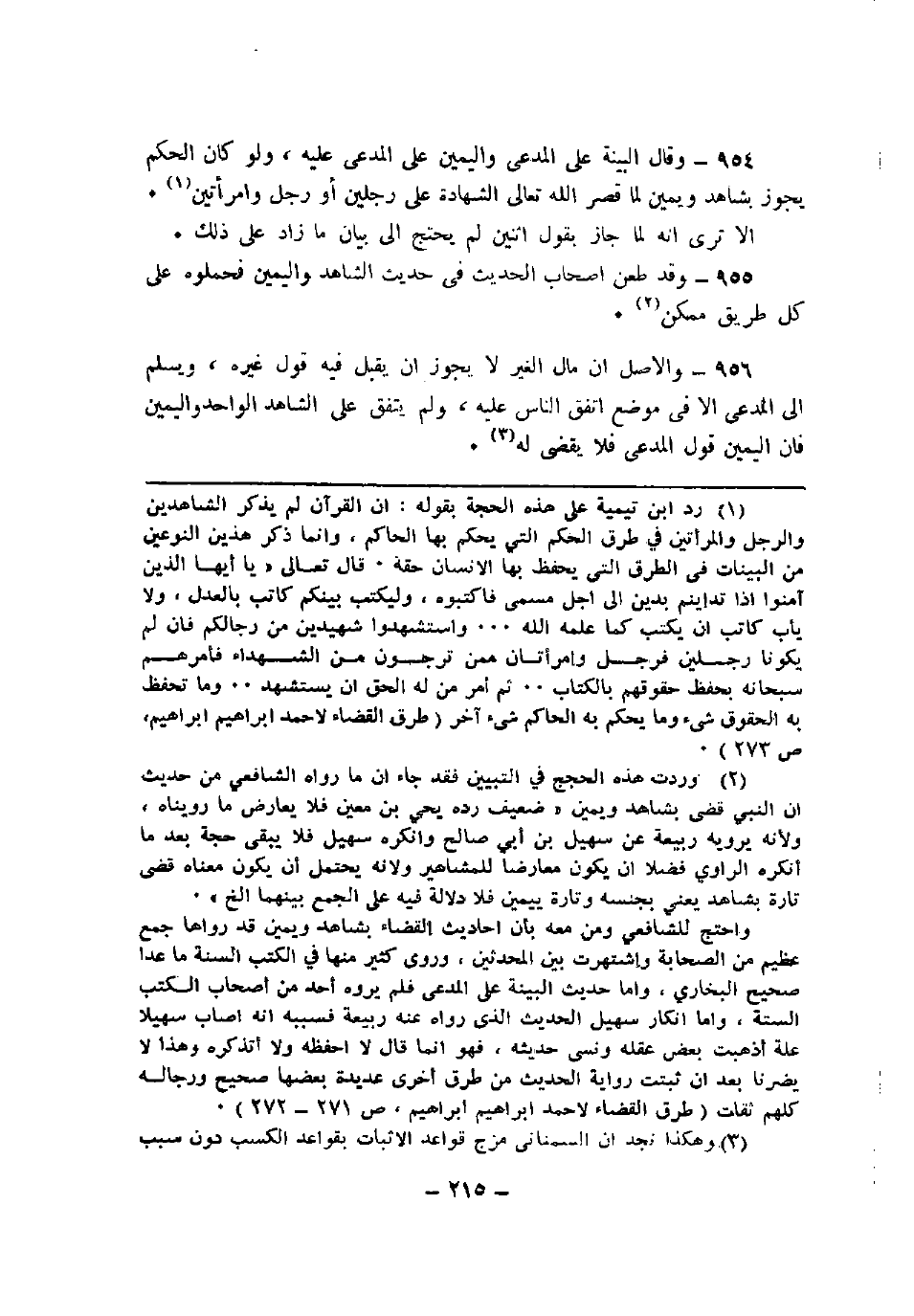 954 - وقال البينة على المدعي واليمين على المدعى عليه، ولو كان الحكم يجوز بشاهد ويمين لما قصر الله تعالى الشهادة على رجلين أو رجل وامرأتين.