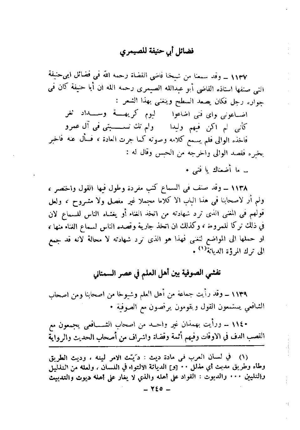 1139 - وقد رأيت جماعة من أهل العلم وشيوخاً من أصحابنا ومن أصحاب الشافعي يستمعون القول ويقومون يرقصون مع الصوفية.