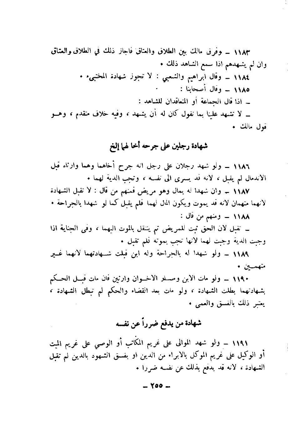1189 - ولو شهدا له بالجراحة وله ابن قبلت شهادتهما لأنهما غير متهمين.