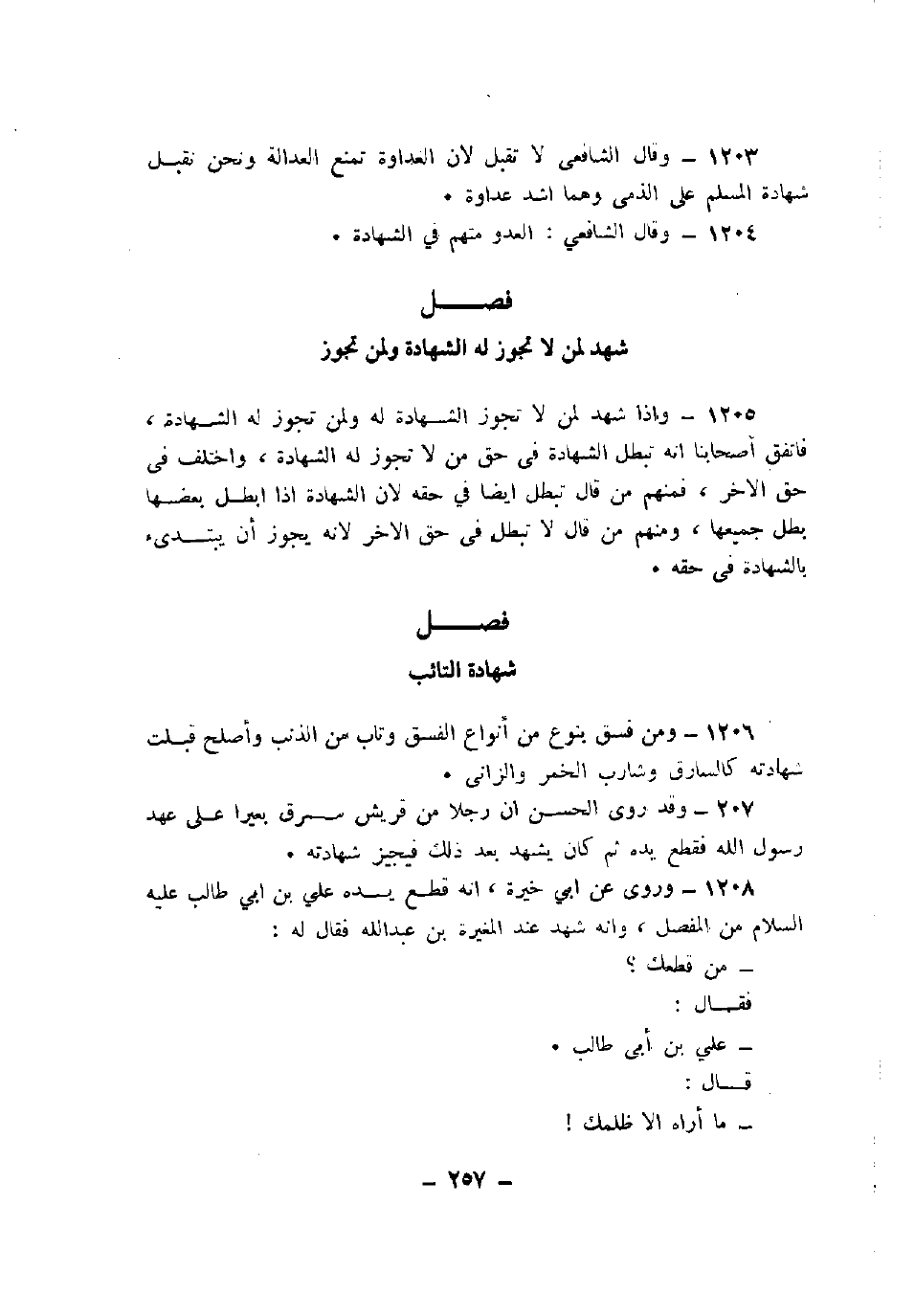 1204 - وقال الشافعي: العدو متهم في الشهادة.