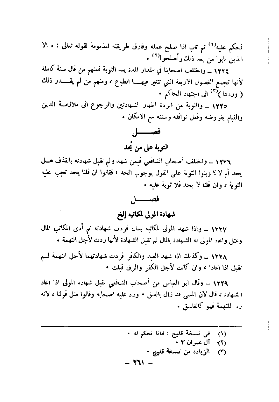 1225 - والتوبة من الردة إظهار الشهادتين والرجوع إلى ملازمة الدين والقيام بفروضه وفعل نوافله وسننه مع الإمكان.