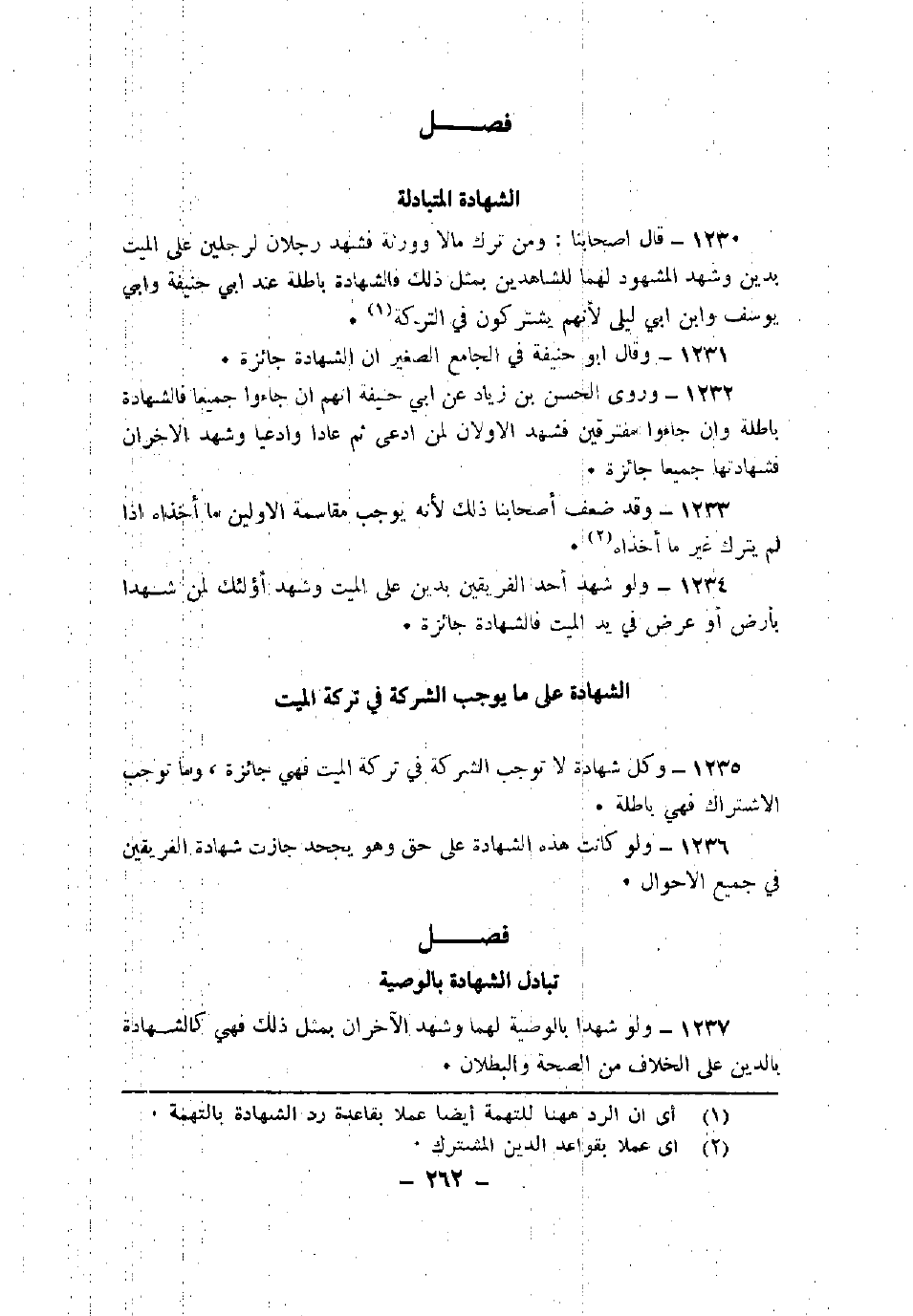 1235 - وكل شهادة لا توجب الشركة في تركة الميت فهي جائزة، وما توجب الاشتراك فهي باطلة.