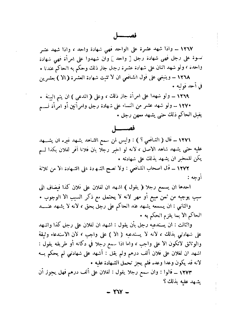 1268 - وينبغي على قول الشافعي أن لا تثبت شهادة العشرة (إلا) بعشرين في أحد قوليه.