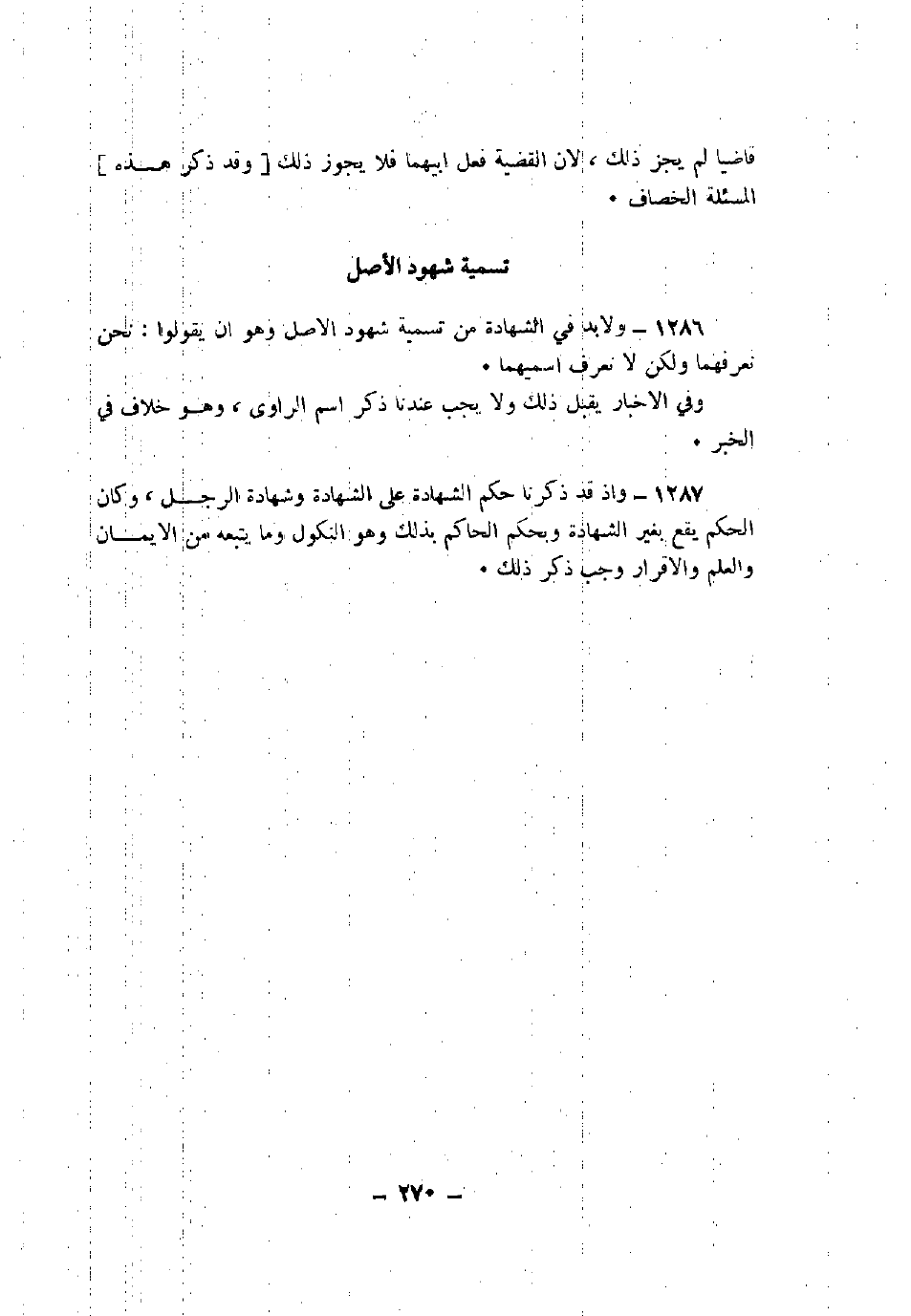 1286 - ولابد في الشهادة من تسمية شهود الأصل وهو أن يقولوا: نحن نعرفهما ولكن لا نعرف اسميهما.