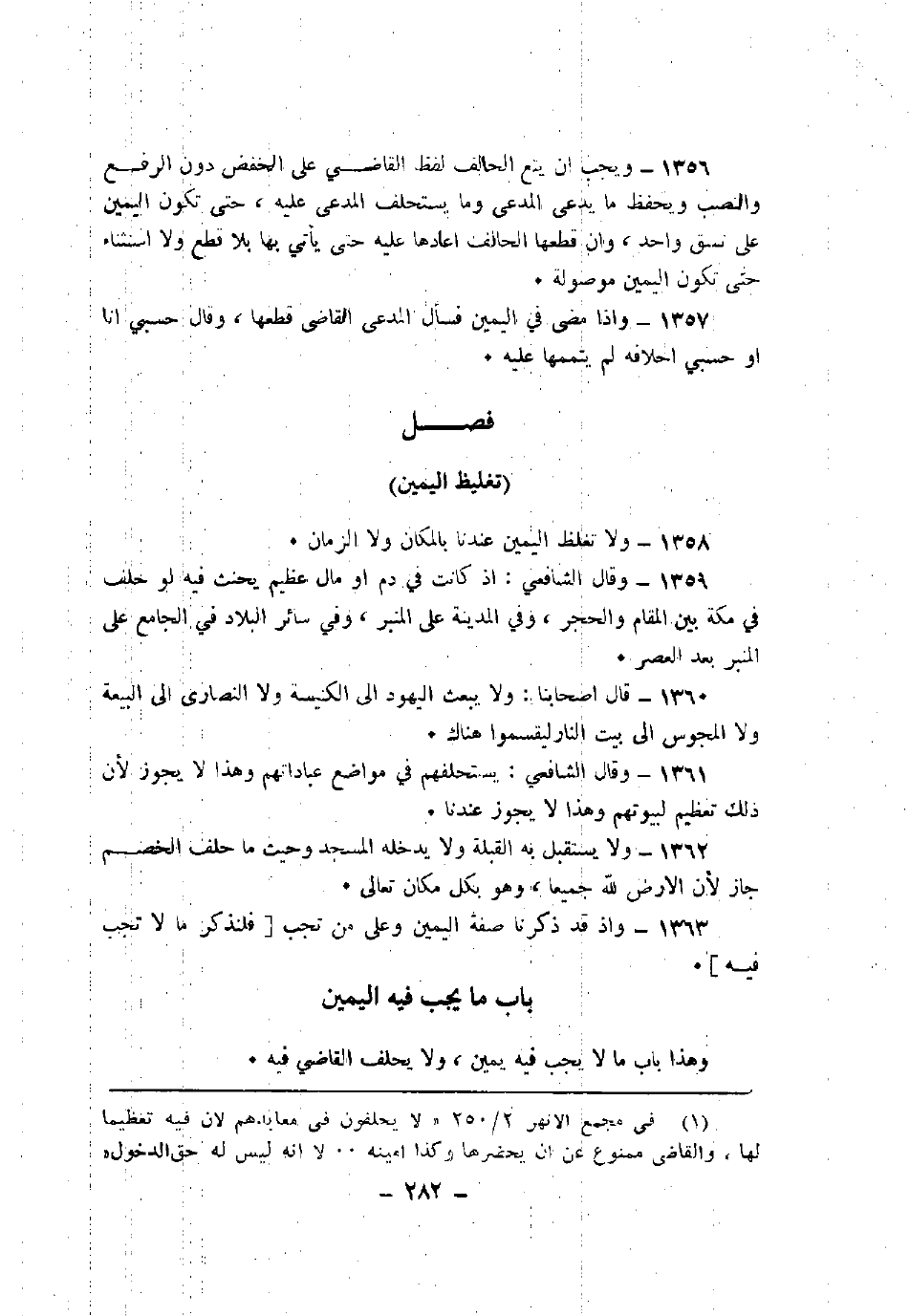 1360 - قال أصحابنا: ولا يبعث اليهود إلى الكنيسة ولا النصارى إلى البيعة ولا المجوس إلى بيت النار ليقسموا هناك.