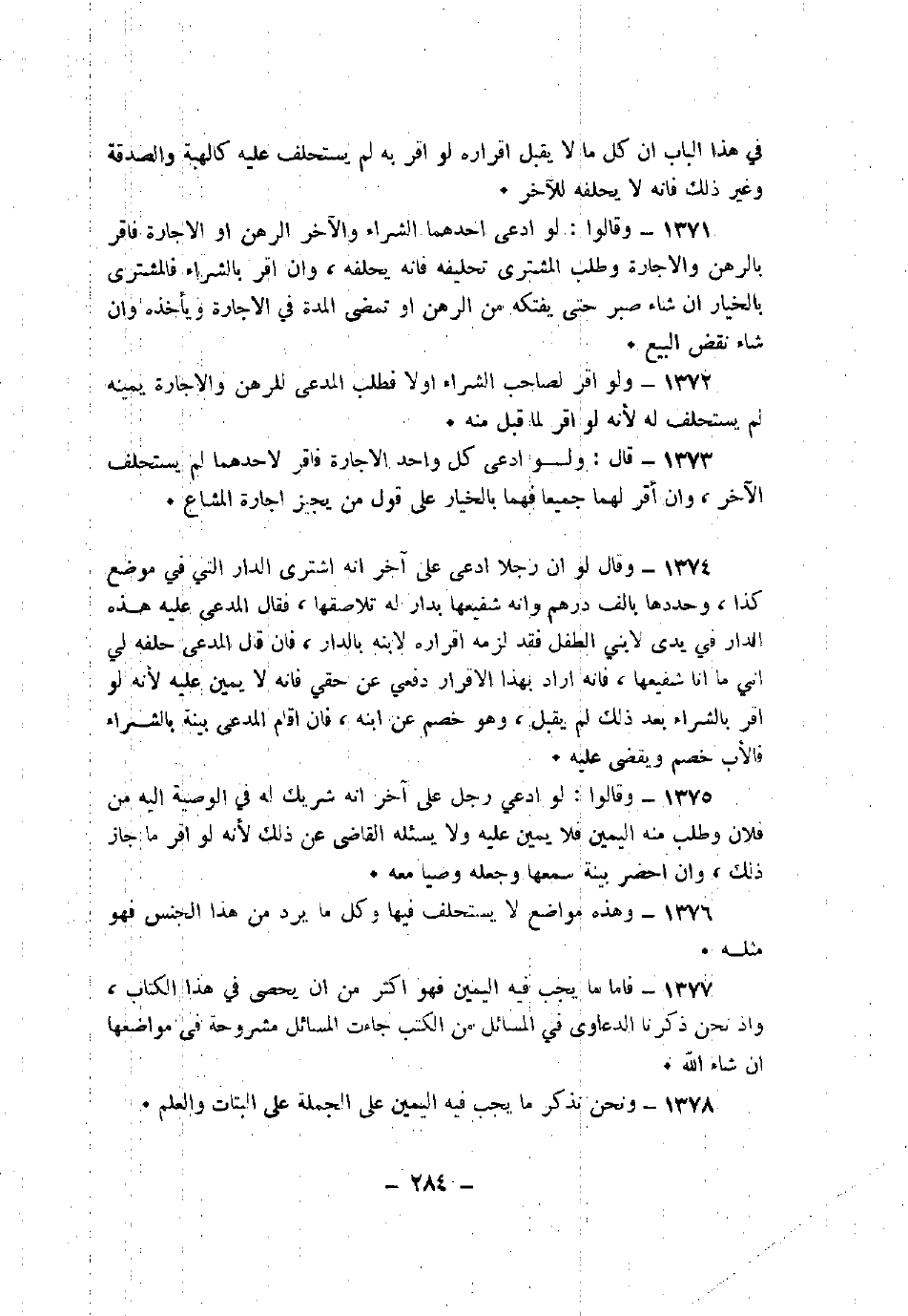 1376 - وهذه مواضع لا يستحلف فيها وكل ما يرد من هذا الجنس فهو مثله.