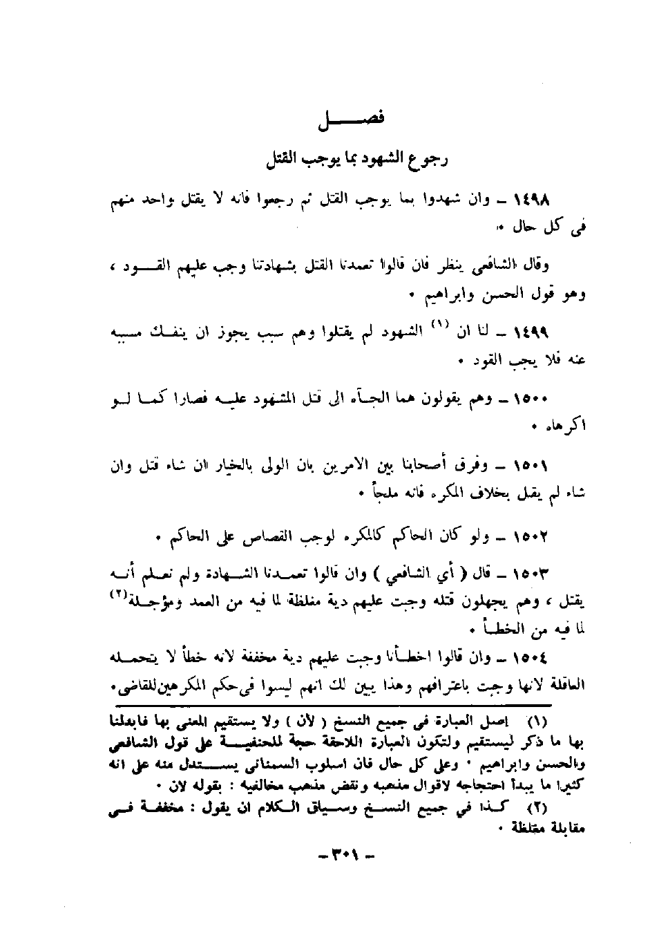 1498 - وإن شهدوا بما يوجب القتل ثم رجعوا فإنه لا يقتل واحد منهم في كل حال.