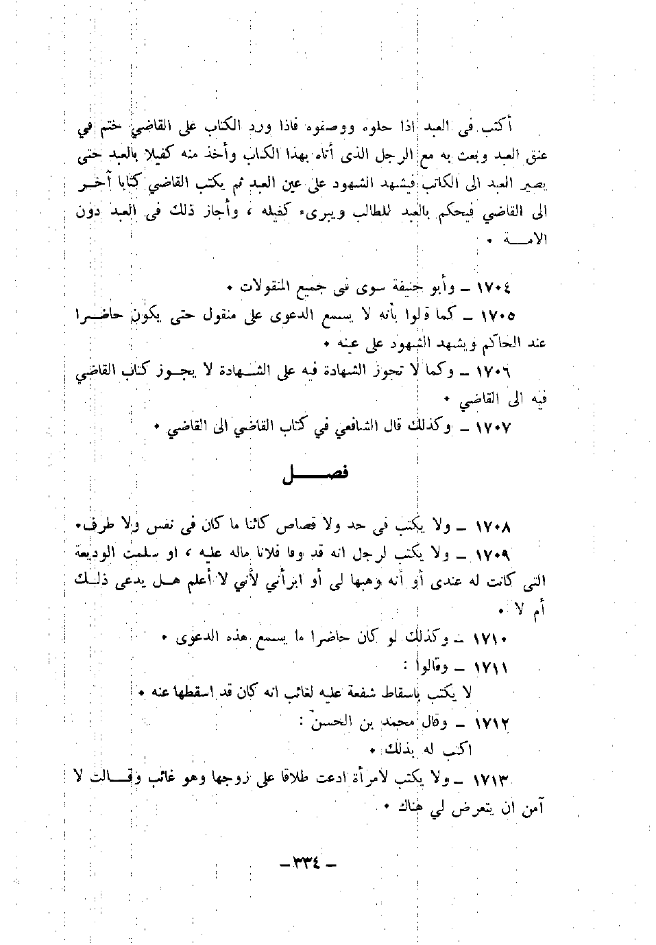 1706 - وكما لا تجوز الشهادة فيه على الشهادة لا يجوز كتاب القاضي فيه إلى القاضي.