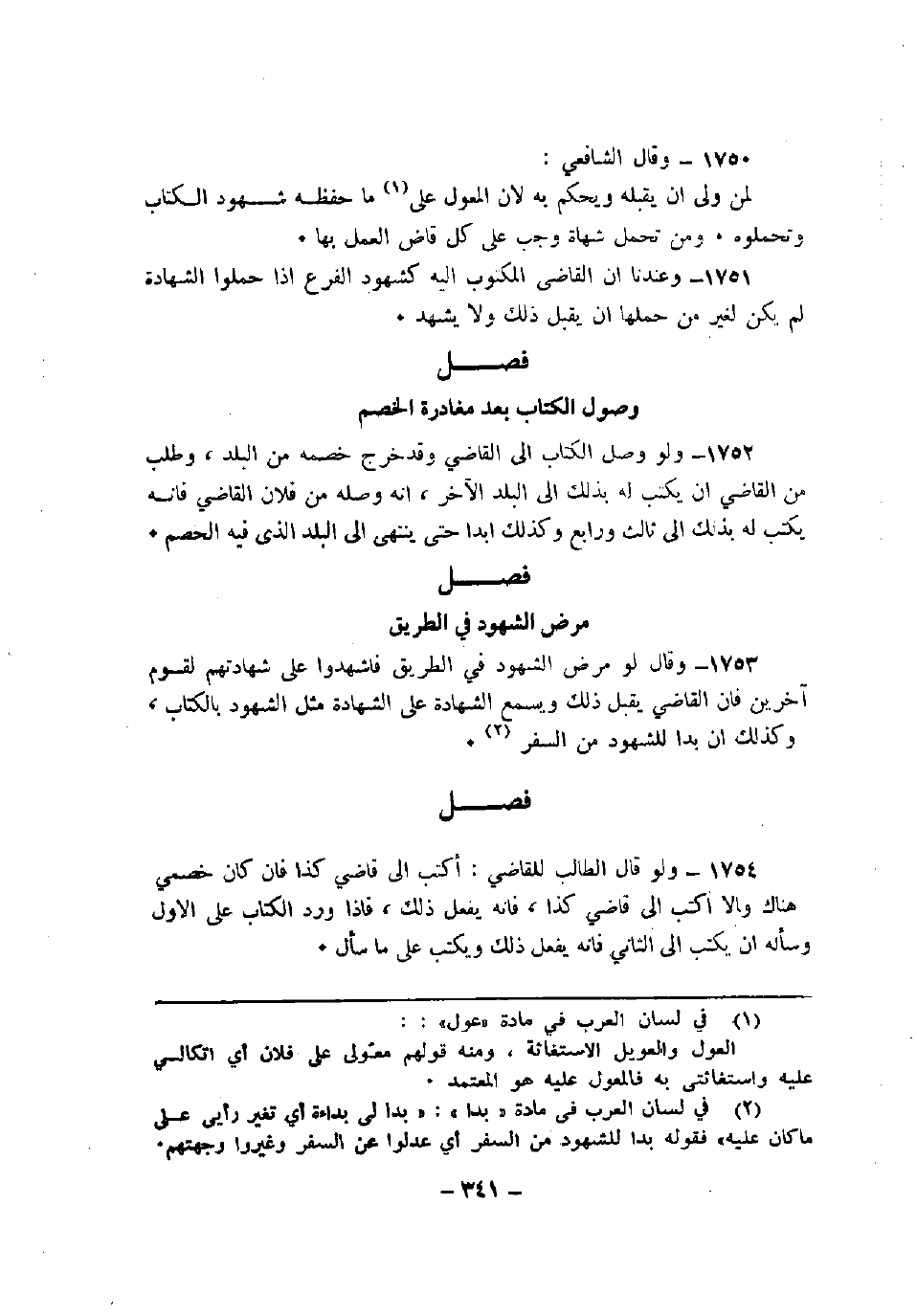 1752 - ولو وصل الكتاب إلى القاضي وقد خرج خصمه من البلد، وطلب من القاضي أن يكتب له بذلك إلى البلد الآخر، أنه وصله من فلان القاضي فإنه يكتب له بذلك إلى ثالث ورابع وكذلك أبداً حتى ينتهي إلى البلد الذي فيه الخصم.
