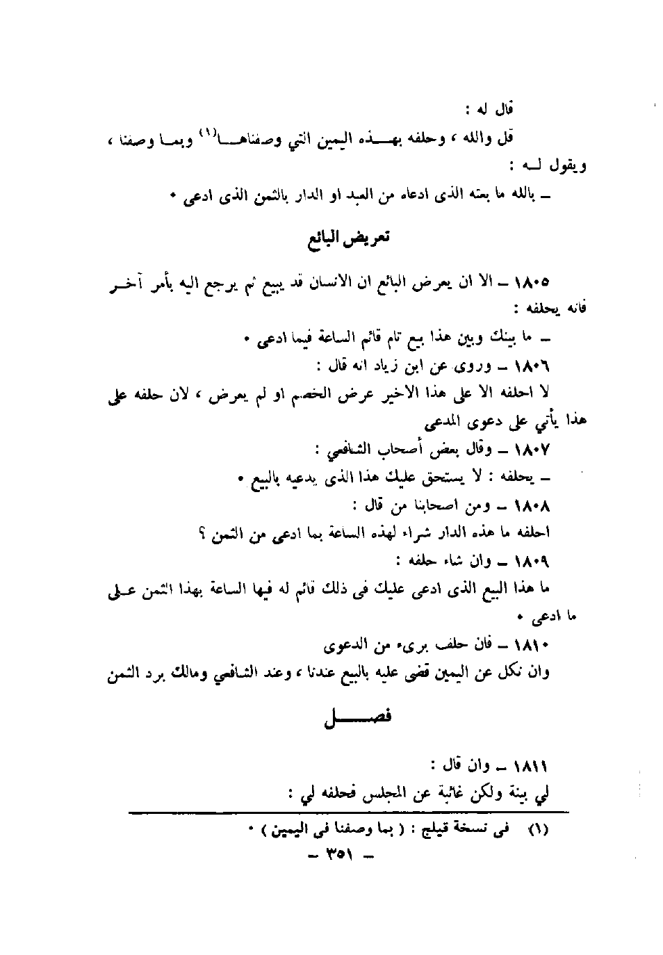 1805 - إلا أن يعرض البائع أن الإنسان قد يبيع ثم يرجع إليه بأمر آخر فإنه يحلفه: