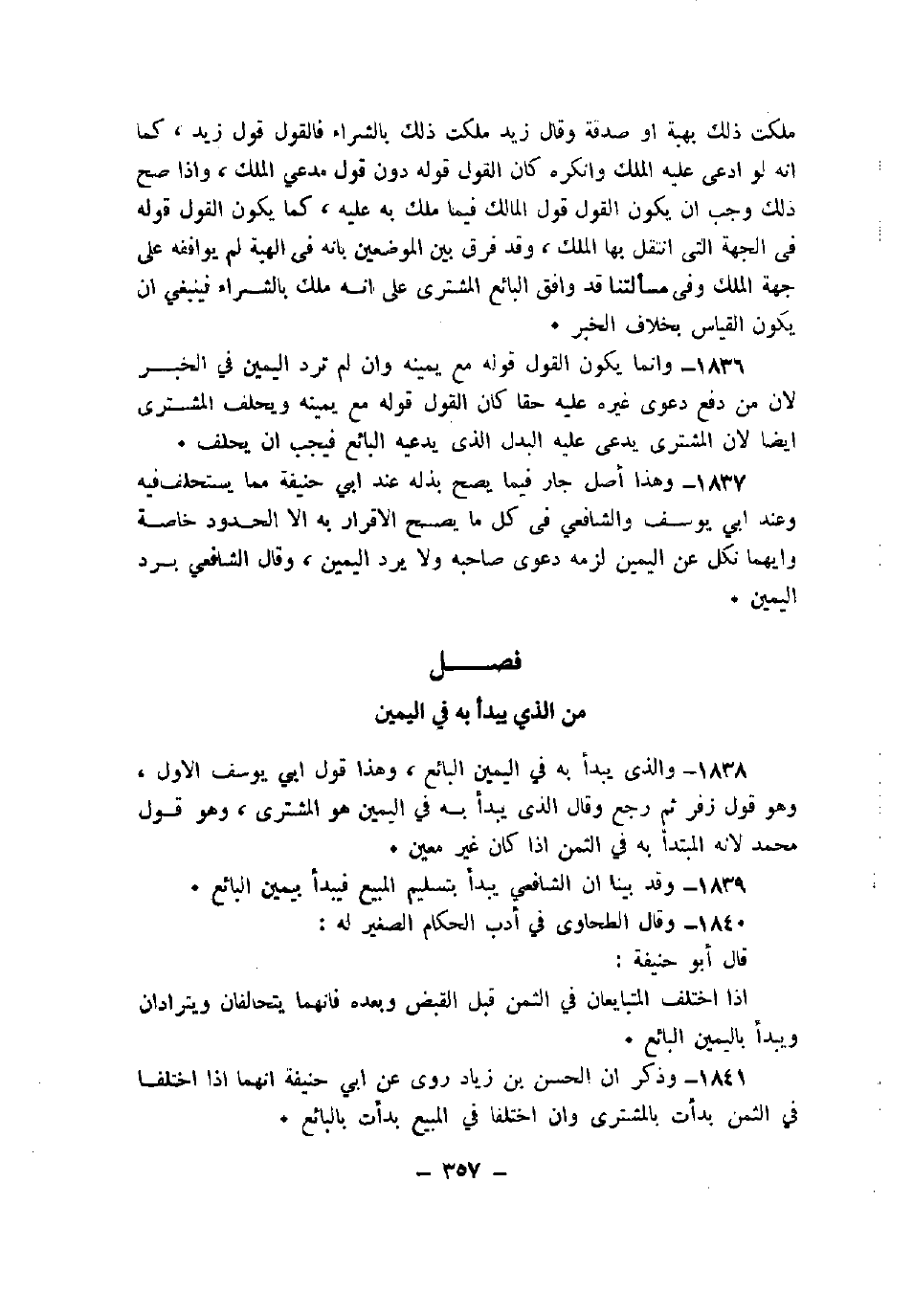 1838 - والذي يبدأ به في اليمين البائع، وهذا قول أبي يوسف الأول، وهو قول زفر ثم رجع وقال الذي يبدأ به في اليمين هو المشتري، وهو قول محمد لأنه المبتدأ به في الثمن إذا كان غير معين.