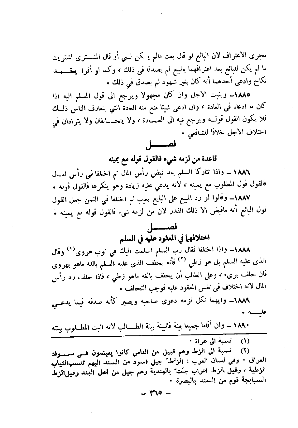 1885 - ويثبت الأجل وإن كان مجهولاً ويرجع إلى قول المسلم إليه إذا كان ما ادعاه في العادة، وإن ادعى شيئاً منع منه العادة التي يتعارف الناس ذلك فلا يكون القول قوله ويرجع فيه إلى العادة، ولا يتحالفان ولا يترادان في اختلاف الأجل خلافاً للشافعي.