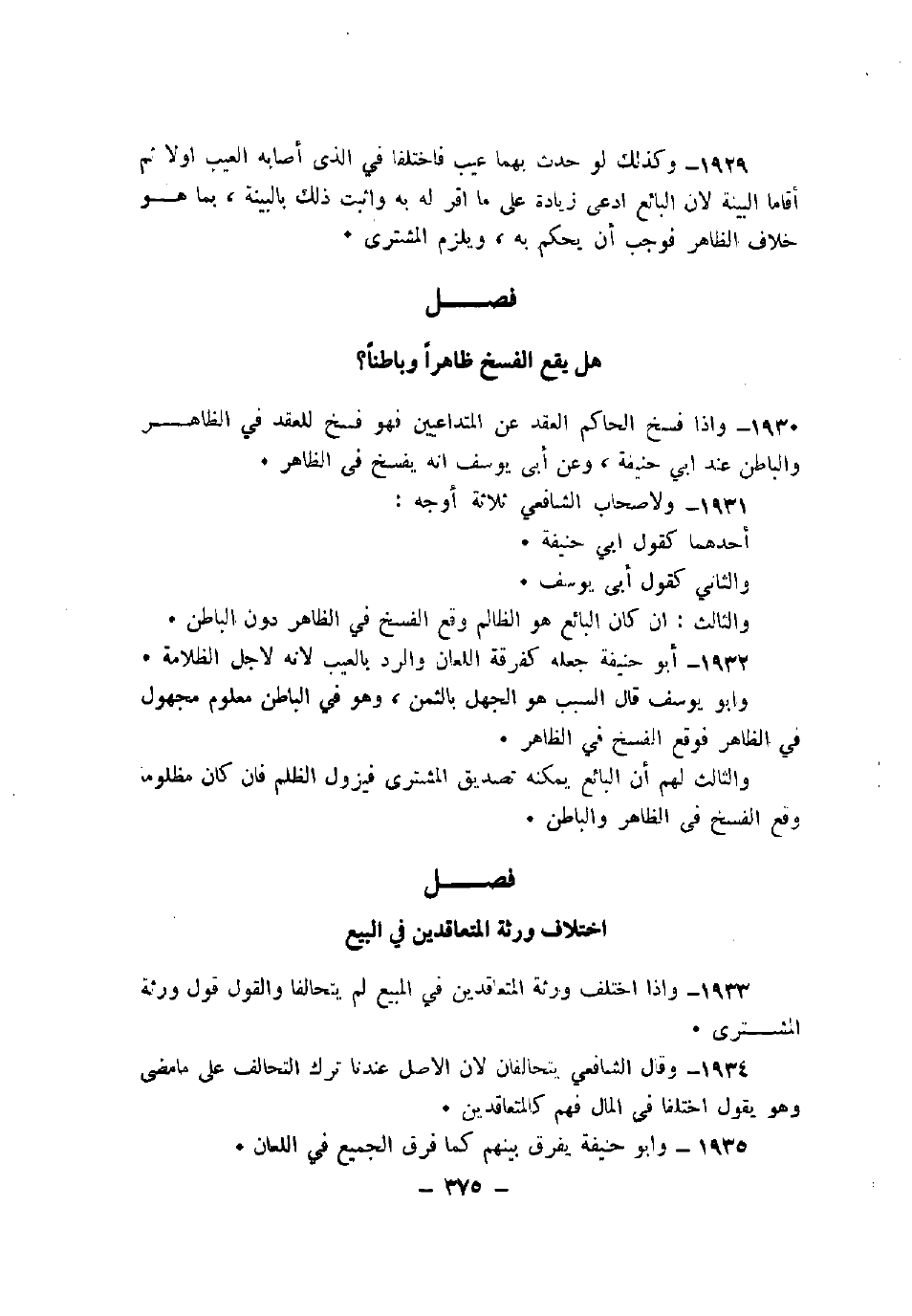 1930 - وإذا فسخ الحاكم العقد عن المتداعين فهو فسخ للعقد في الظاهر والباطن عند أبي حنيفة، وعن أبي يوسف أنه يفسخ في الظاهر.