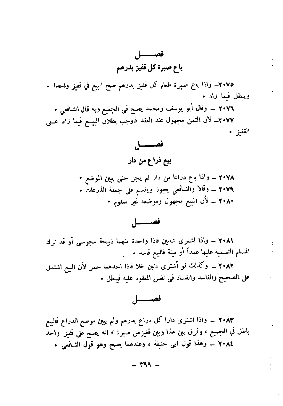 2083 - وإذا اشترى داراً كل ذراع بدرهم ولم يبين موضع الذراع فالبيع باطل في الجميع، وفرق بين هذا وبين قفيز من صبرة، أنه يصح على قفيز واحد.